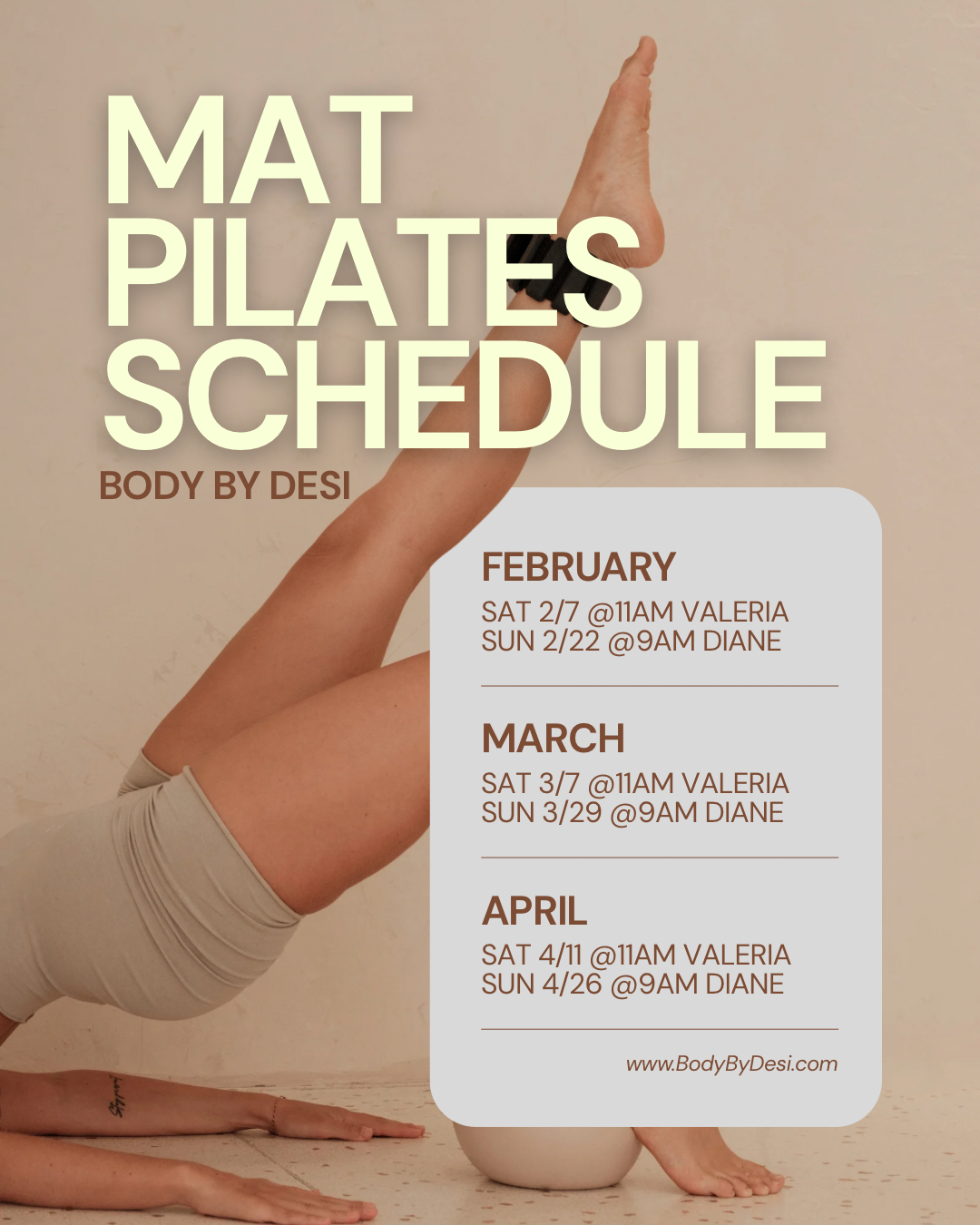 Join us for a special Pilates classes hosted by Body by Desi and Special guest!
